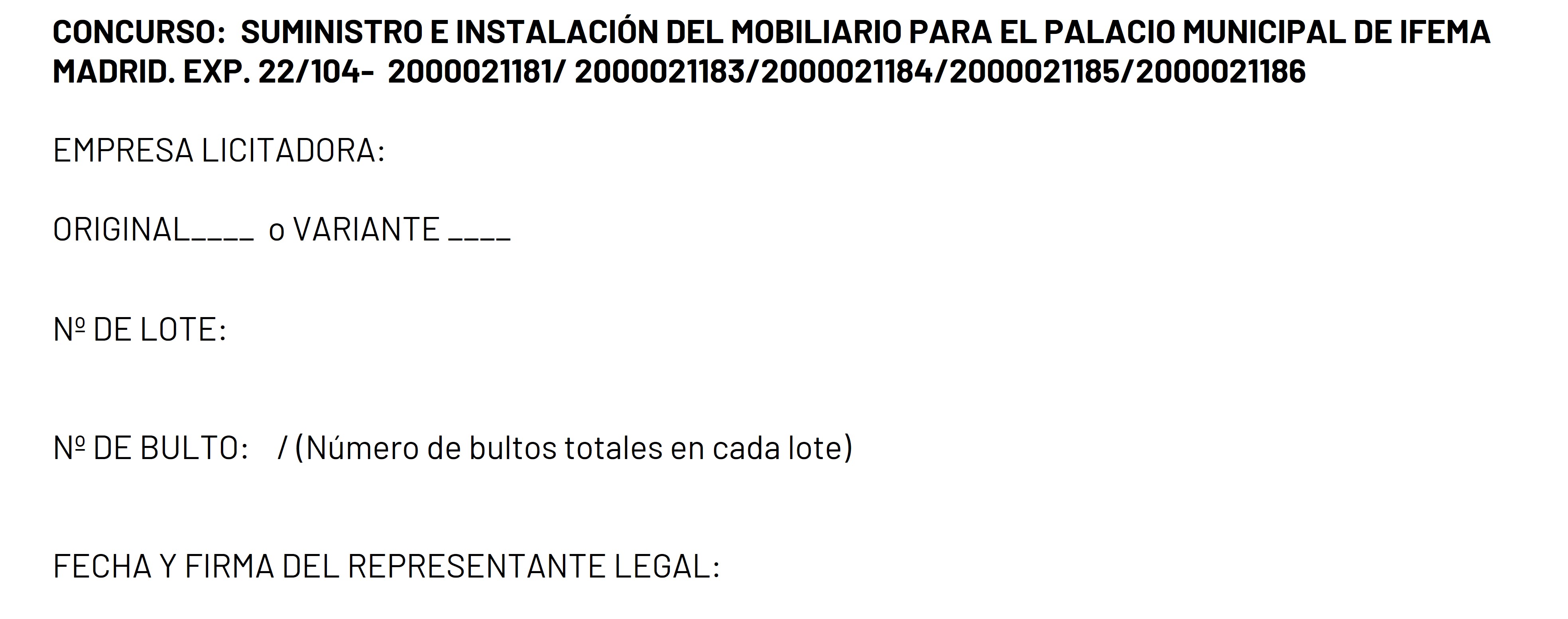 SUMINISTRO E INSTALACIÓN DEL MOBILIARIO PARA EL PALACIO MUNICIPAL DE IFEMA MADRID